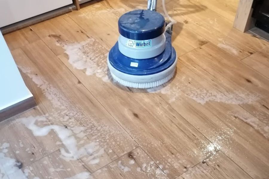 • – globinsko čiščenje tkanine – izpiranje s čisto vodo z globinskim sesalcem,
